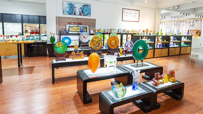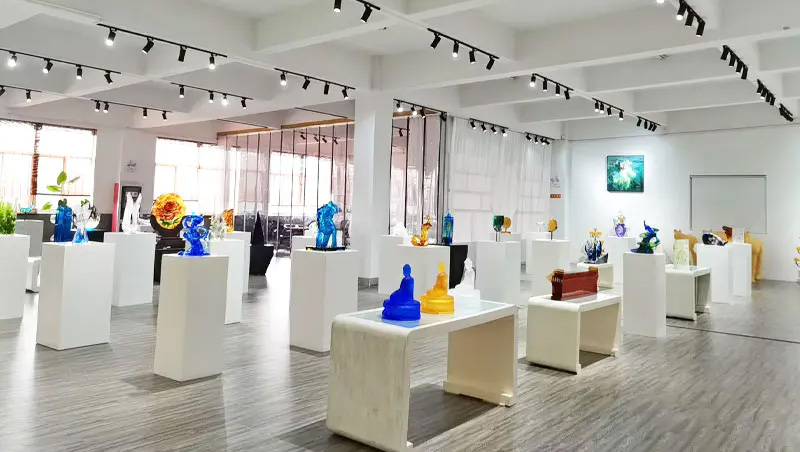 งานศิลปะที่ทำจากแก้วค่อยๆ พัฒนาจากของขวัญงานฝีมือแบบดั้งเดิม ไปจนถึงเครื่องเรือนตกแต่ง วัฒนธรรมทางพุทธศาสนา เครื่องใช้บนโต๊ะอาหารคริสตัล และเครื่องประดับทันสมัย ฐานการผลิตของบริษัทตั้งอยู่ในเมืองน้ำที่สวยงามและเจริญรุ่งเรืองของ Jinxi ในคุนซาน มณฑลเจียงซู มีพื้นที่วิจัยและพัฒนาสำหรับการผลิตกระจกที่ครอบคลุมพื้นที่ 35,000 ตารางเมตร โรงงานแห่งนี้มีความสามารถในการออกแบบที่เป็นอิสระ เทคนิคการสร้างแบบจำลองดินเหนียว และทรัพยากรการวิจัยและพัฒนาทางเทคโนโลยี ซึ่งแสดงให้เห็นถึงทักษะที่เป็นผู้ใหญ่ทั้งในการพัฒนาผลิตภัณฑ์และกระบวนการผลิต