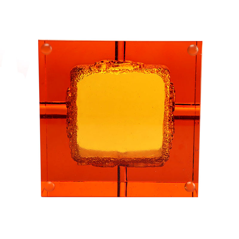 จริงๆ แล้ว เป็นเรื่องปกติที่งานศิลปะที่ทำจากแก้วจะมีฟองอากาศ เนื่องจากเราใช้เทคนิคการหล่อแบบขี้ผึ้ง ซึ่งส่งผลให้เกิดฟองอากาศภายในชิ้นงานโดยธรรมชาติ การที่แสงหักเหผ่านฟองอากาศภายในเหล่านี้แสดงให้เห็นถึงเสน่ห์อันเป็นเอกลักษณ์ของวัสดุแก้ว แสดงให้เห็นอย่างสวยงามว่าแก้วทำหน้าที่เป็นภาชนะสำหรับให้แสงสว่างอย่างแท้จริง